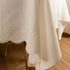 This magnificent cloth with beautiful embroidered floral details scattered throughout with scallop edges is a unique find. The scallop detail is on the width side of the cloth and the length is a regular hem.