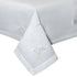 Elegant and whimsical, this beautiful white cloth, embroidered with embroidered flowers with a gold branch is the perfect way to create a light and sophisticated vibe.
